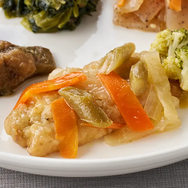 カラッと揚げたアジを野菜たっぷりの南蛮漬けに仕上げました。香ばしいアジと野菜のシャキシャキ感をお楽しみください。