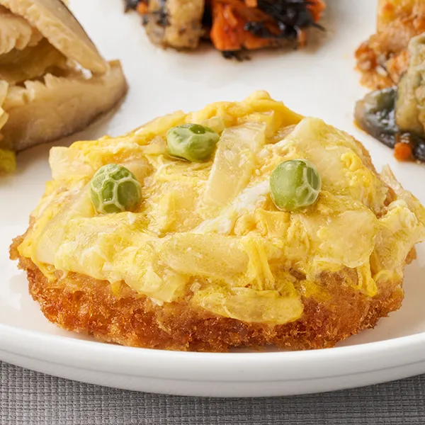 ヒレカツにトロっと優しい味つけの玉子を合わせました。ボリュームたっぷり、食べ応えも大満足な1品です。