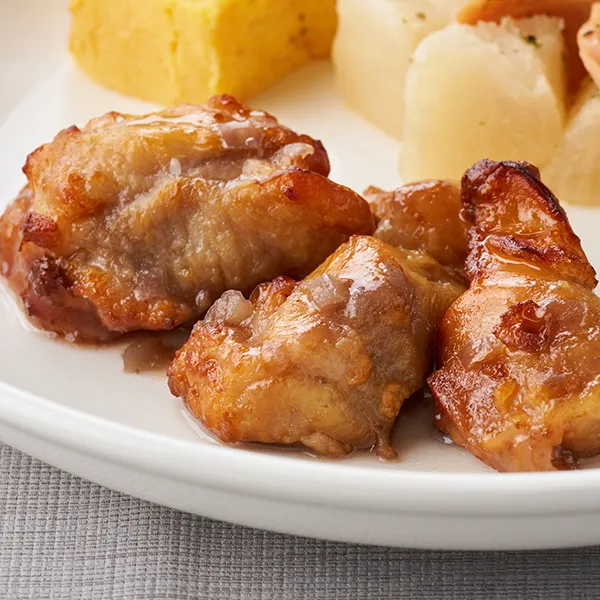 一口サイズのローストチキンに、赤ワインと醤油が香る自家製ソースを合わせました。