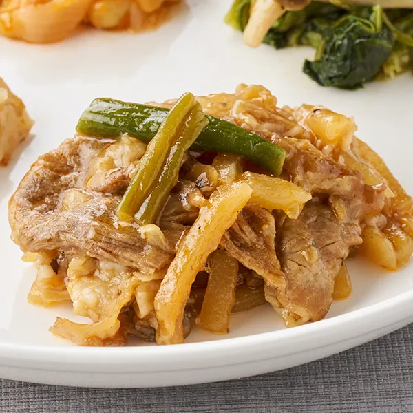 オニオン・ガーリックがベースのアメリカンテイストなソースを、牛肉とあわせてスパイシーに仕上げました。