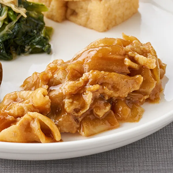 和食の定番料理の豚肉の生姜焼きをカットの大きさや味付けを食べやすく工夫しました。ごはんが進む1品です。