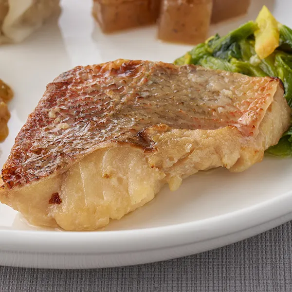 赤魚の塩麹焼き、マーボー豆腐、ピリ辛こんにゃく、肉シューマイ、ほうれん草の辛子和え