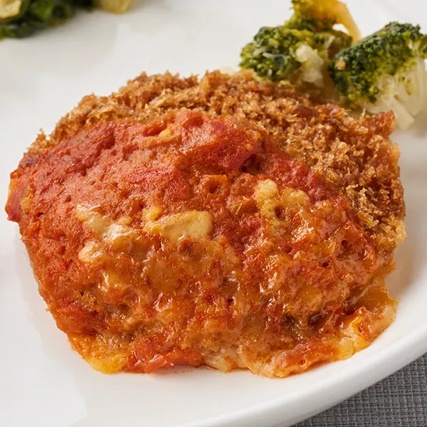 ヒレカツに酸味の効いたトマトソースとチーズのコクをあわせ、食べ応えのある一品に仕上げました。