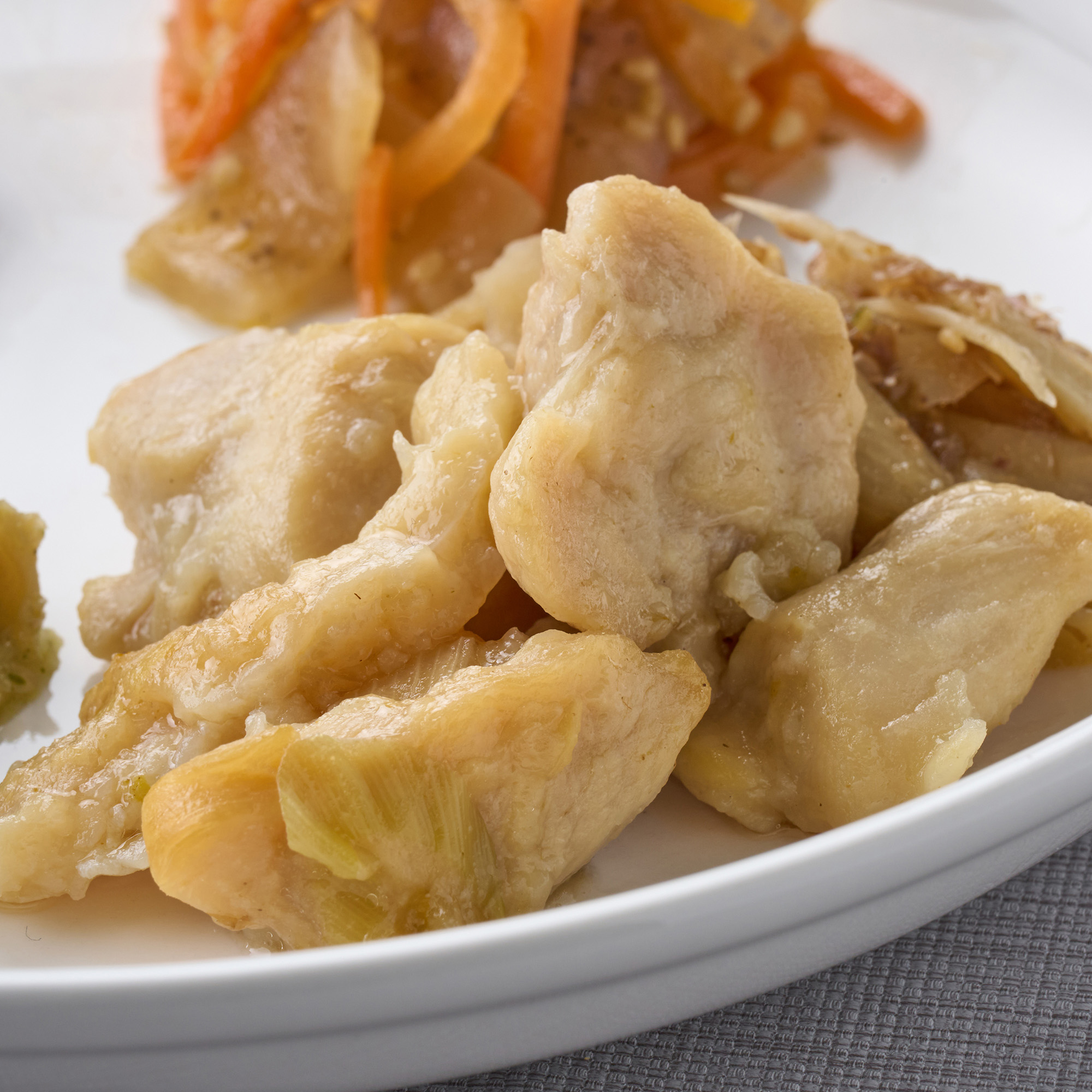蒸し焼きにした鶏肉に柚子胡椒感じるたれをあわせた料理です。