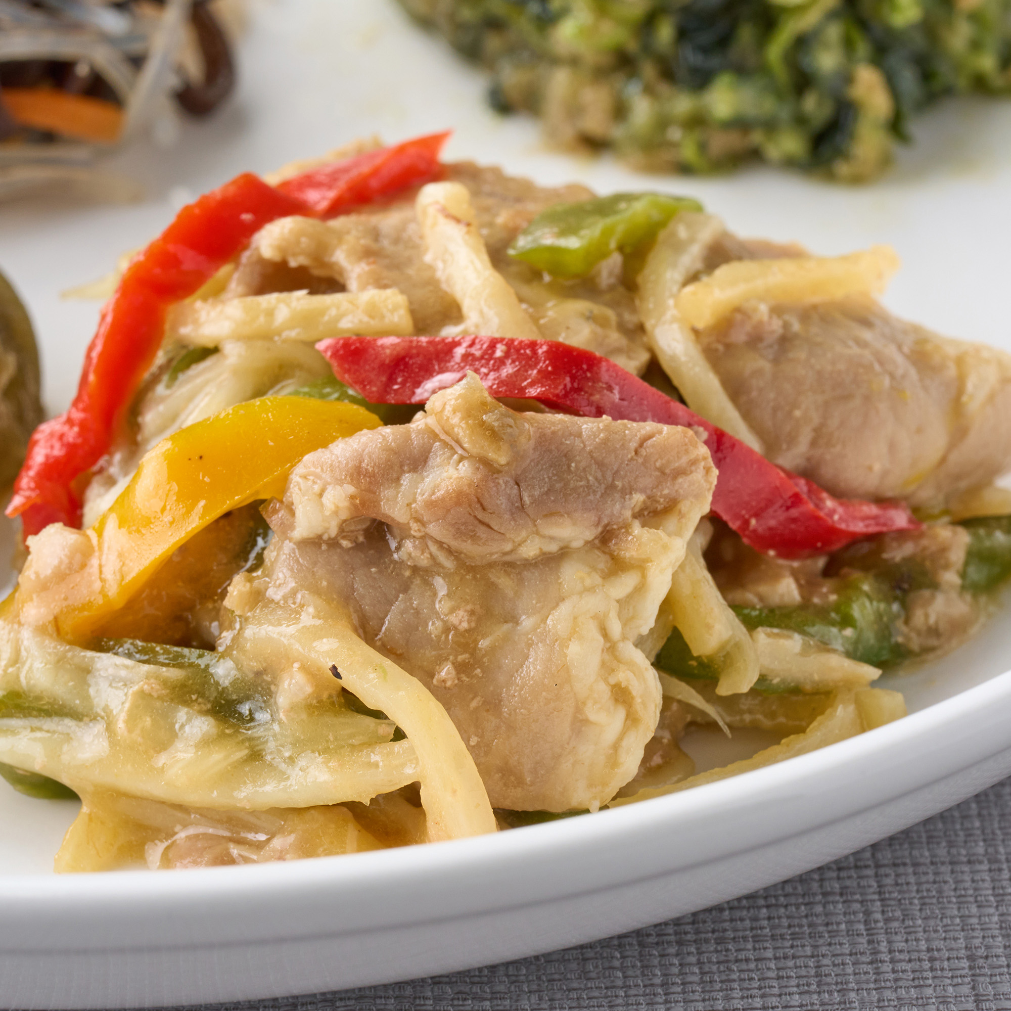 中華の定番料理の青椒肉絲を黄ピーマンなどの野菜を使用し彩りよく仕上げました。