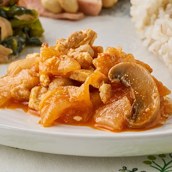 豚肉と玉ねぎをトマトの旨味たっぷりなソースで煮込みました。